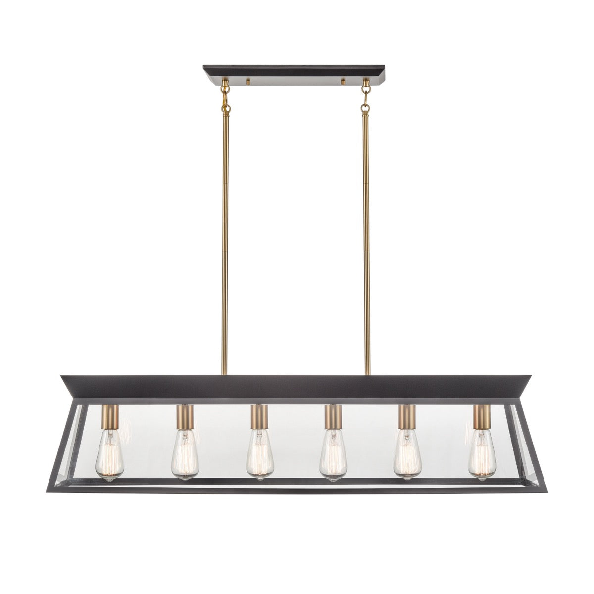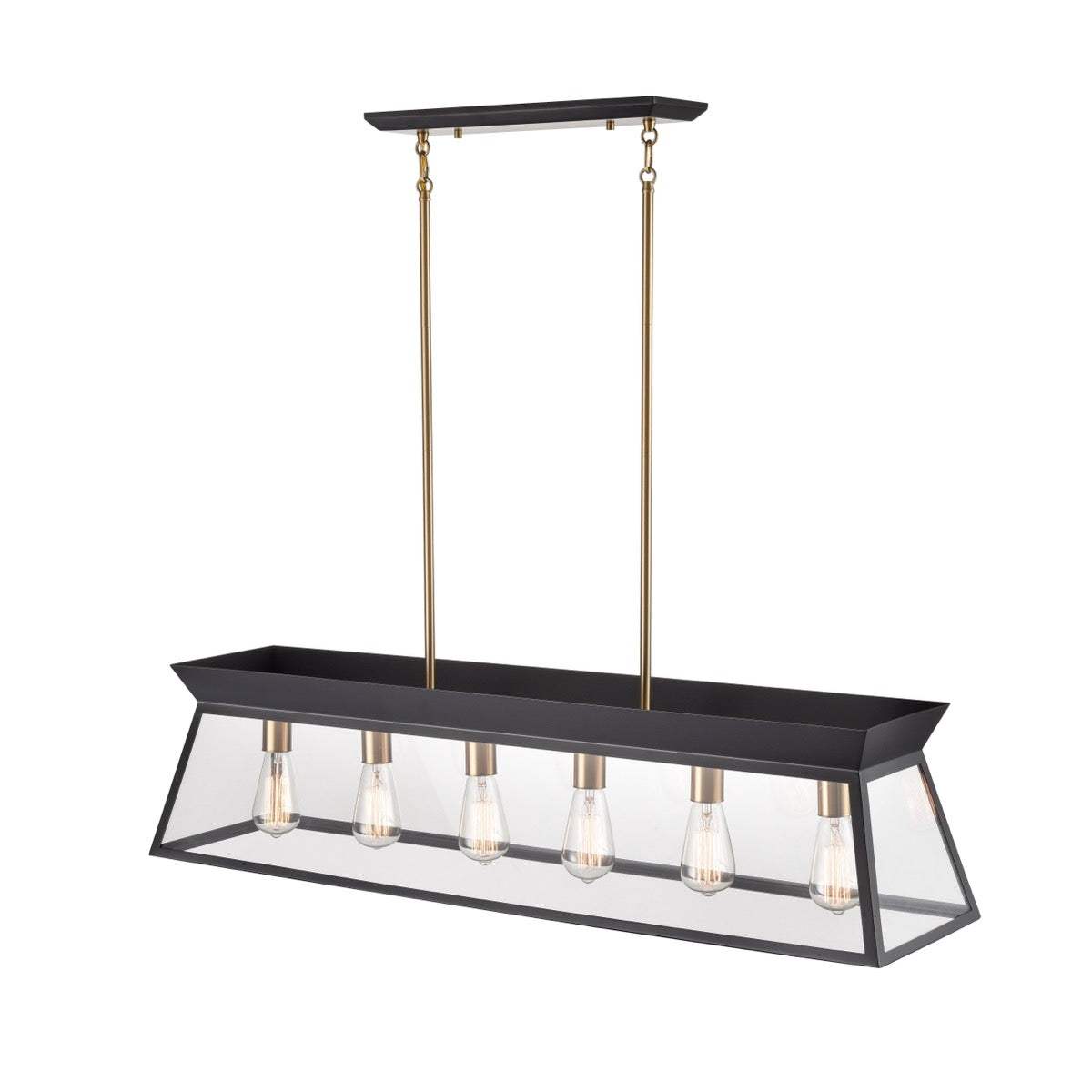 La collection Lucian, conçue par Kevin Kraemer, est une version moderne d'une lampe de style lanterne classique. Présentée dans un laiton brossé plaqué riche (également disponible en noir avec des accents en laiton). Panneau en verre transparent entourant les ampoules. Le modèle présenté est un lustre linéaire pour îlot qui est livré avec des tiges supplémentaires pour un réglage facile de la hauteur et dispose d'un support de suspension pour être compatible avec les plafonds en pente. Idéal pour toute table ou îlot.
