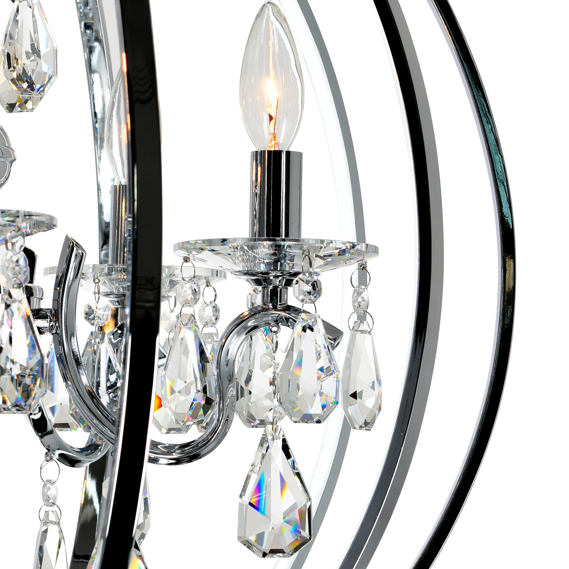 The Abia 5 Light Chandelier showcases a 22 inch spherical cage with five candelabra arms adorned with crystal bead drops. Offered in chrome finish, this lighting option can enhance the mood or ambiance in a space. Add this contemporary up chandelier to an unexpected place and watch it make the right statement.
