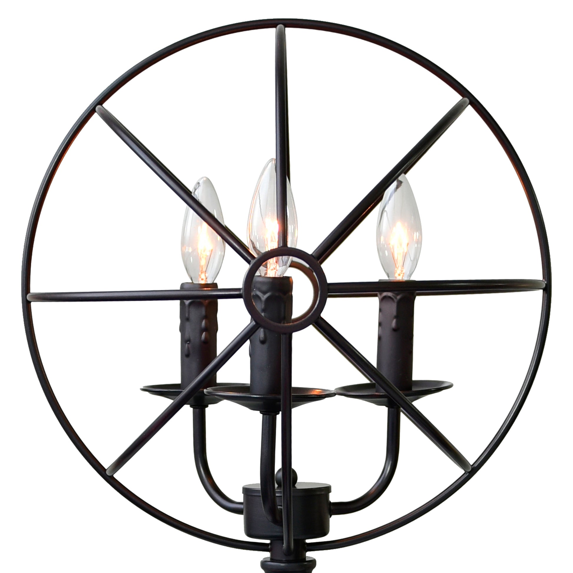 Add a touch of farmhouse charm to your interiors by incorporating this Arza 3 Light Floor Lamp in your living room's design plan. A 14 inch orb-like cage houses three candelabras in brown iron frame. Bulbs in candelabra style, of course, will bring a soft glow to the room. This floor lamp's dark brown finish will look extra chic when it is in contrast with a neutral color scheme.