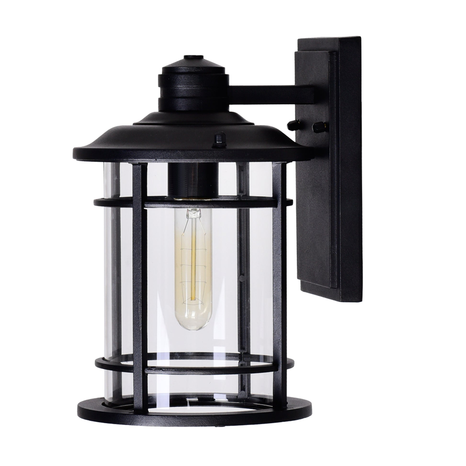 The Belmont 1 Light Outdoor Black Wall Lantern can make your alfresco area safer and more welcoming. This outdoor lighting option features a circular lantern with black metal frame and clear glass panes. This light fixture requires an E26 bulb and is dimmer compatible so you have the means to adjust the brightness and the ambiance in your outdoor entertainment space.