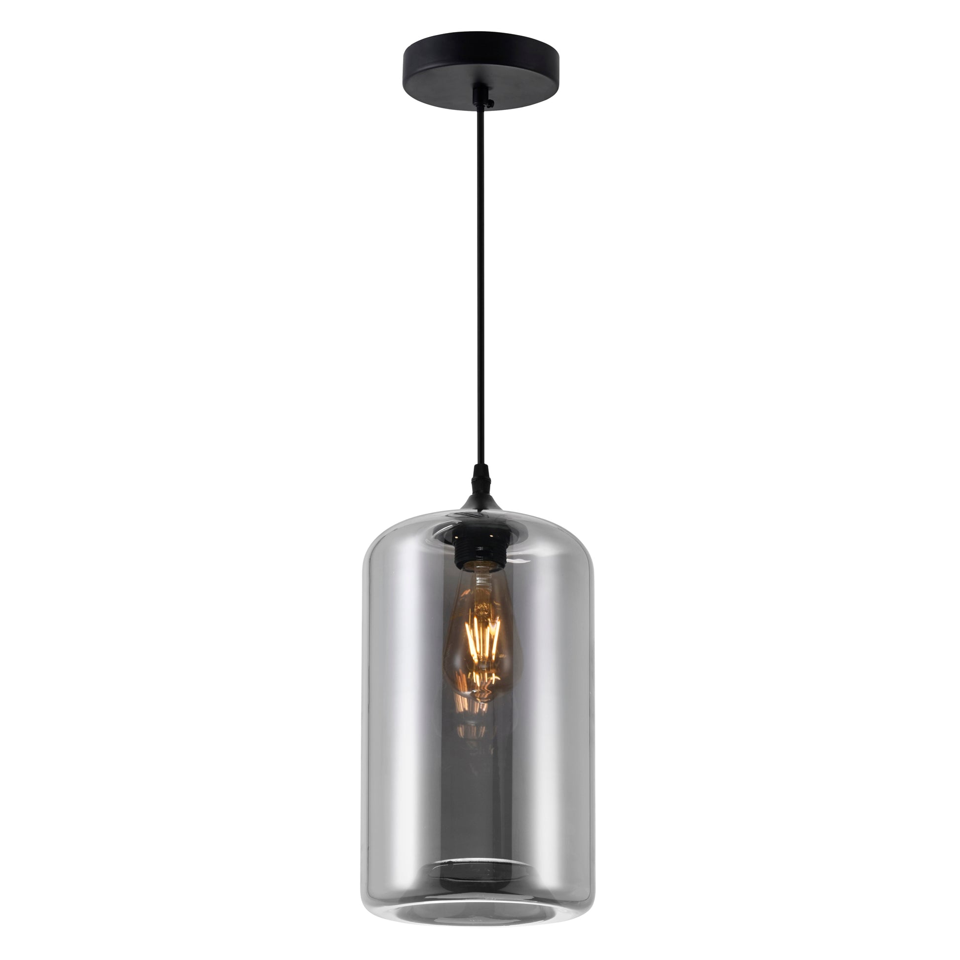 An utterly captivating light source, this glass pendant makes for a smart choice for interior home lighting. The Glass 1 Light Clear Cylinder Pendant offers an effective way to warm up a sterile space. You'll love its clear, colorless glass that delivers a nostalgic glow. The visible bulb adds to the cozy lighting effect. Hang it singly or in multiples for a fresher ambiance and a chicer appeal.